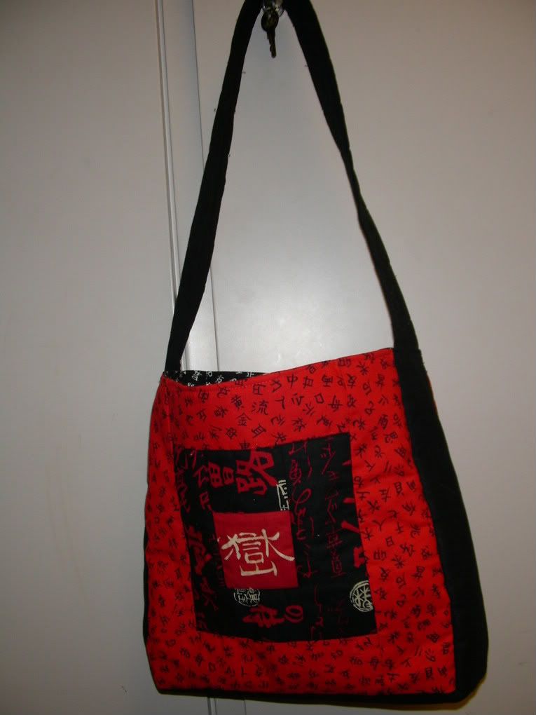 You see, like you see above, I'm trying to make some spare cash from crafting. I figure, I enjoy it, people like them, why not sell them. Right? Well I've gotten a lot of people telling me that I should sell bags like the purse/tote I made for my swap partner above. The thing is, I really don't know if there would be interest. For that matter, I don't even know if it would be worth my time. I mean, what would I sell them for and how would that compare to how much I'm spending in time and materials? Things like that? Would I market them as quilted handbags? Totes? Bento carriers (ingenious idea by a friend to fill a niche market)?