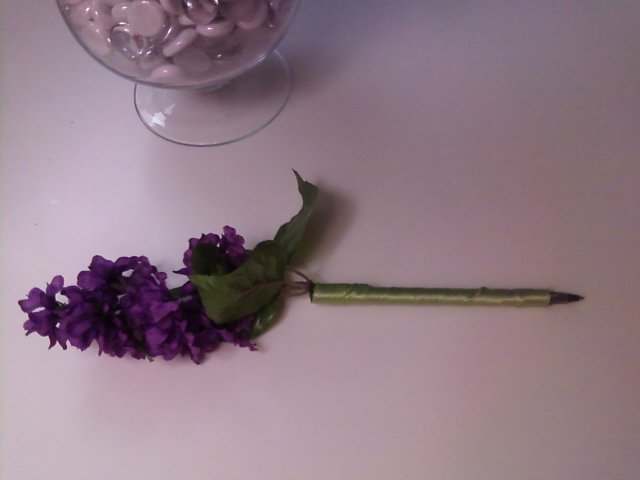 Spray of artificial flowers (or more than one) -when picking out the spray, remember that each stalk will become a pen, so if your spray has some roughage therein, you are going to have some leafy pens. Bonus points if you use their favorite flower or color