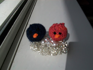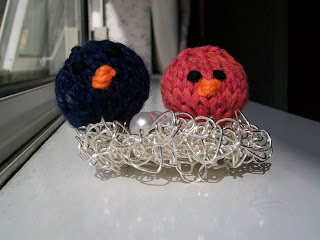 I made this for my parent's thirtieth wedding anniversary. Thirty years is the pearl anniversary, so I wanted some way of incorporating that. The little birds are from Knitting Amigurimi, by Anna Hrachovec.
