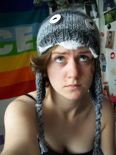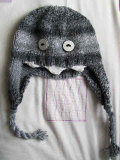 Based on the amazing Brainmonster hat, but I used this pattern (Ravelry link) because I wanted to use bulky yarn I had left over from a jumper. Dublin has a pretty poor googly eye selection, so I improvised with the buttons, but I think if I were making it again I'd just embroider on eyes.