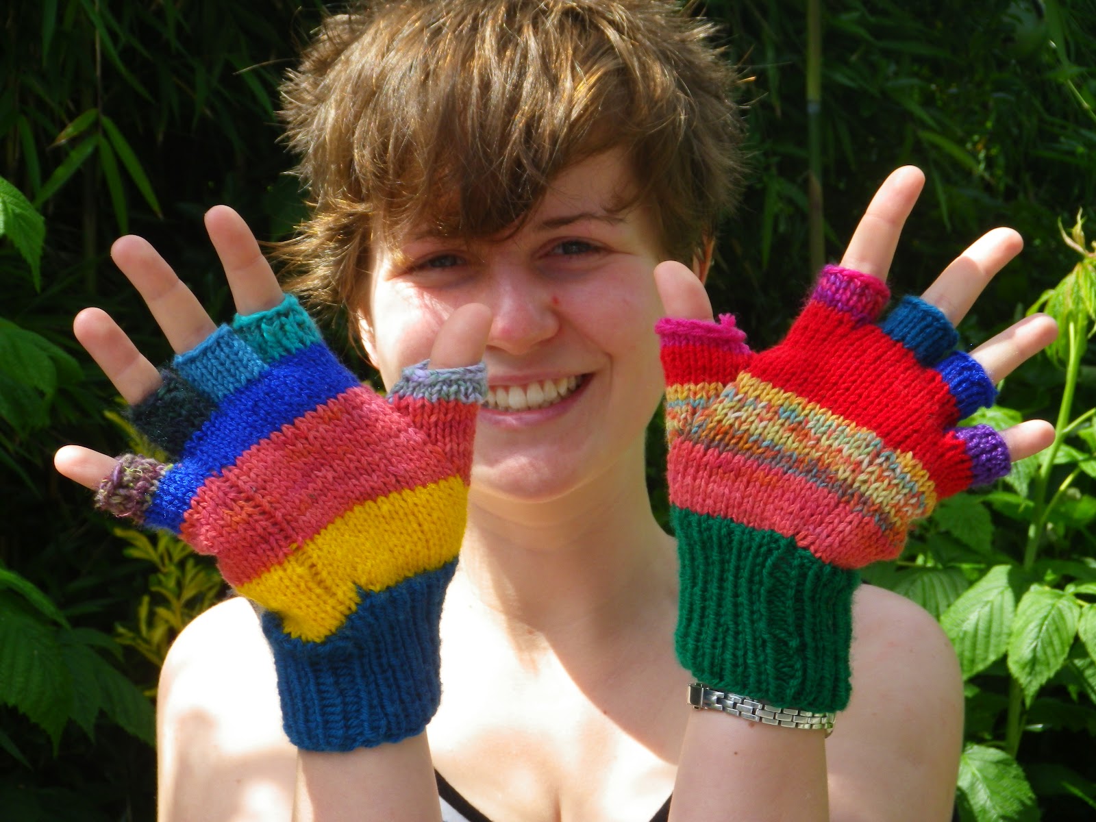 Super-happy knitted gloves.