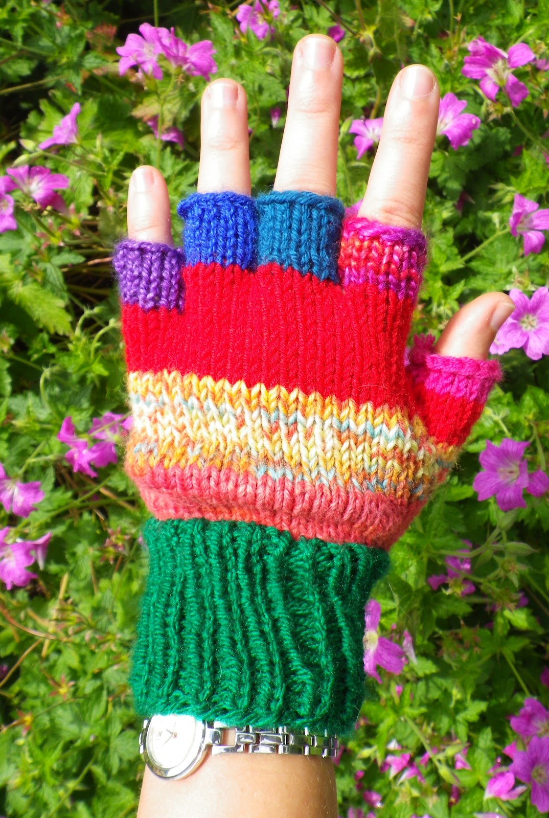 Super-happy knitted gloves.