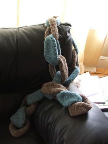 At the shop I saw a chain-linked scarf that inspired me to try something similar. It was somewhat like this scarf I found through Google images, from www.jennycheck.com/ (image hosted on my Photobucket, though).