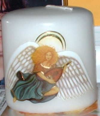 And the candles I got for a dollar also, I want to use my gemagic punches on them, but I spared one to make a angel candle with:)