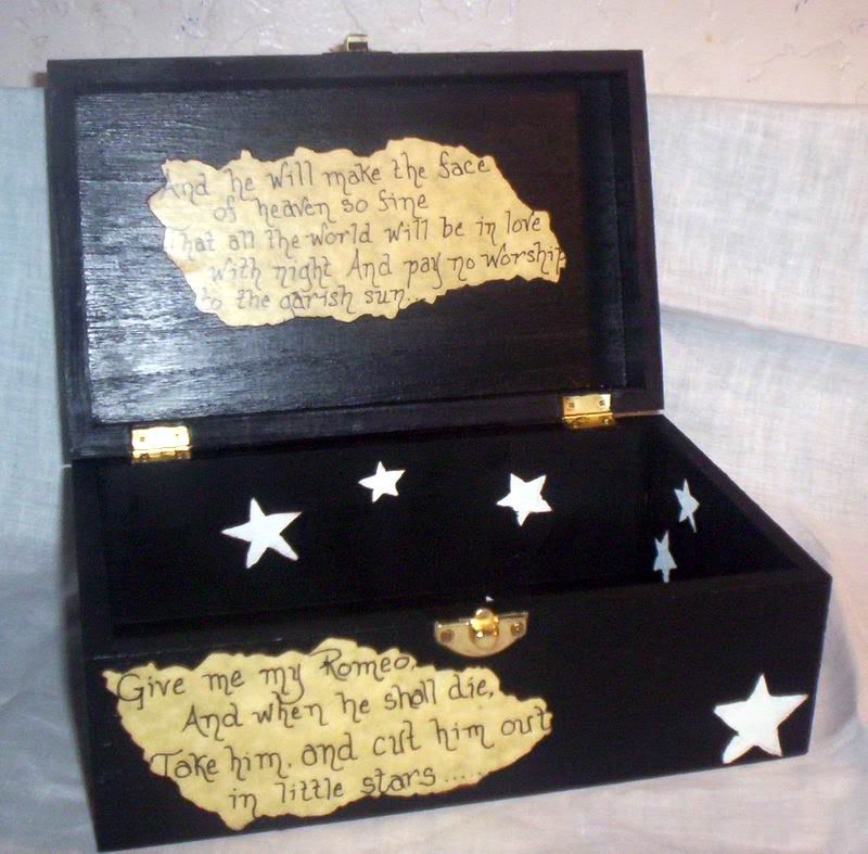 Super easy, I bought plain (balsa wood?) boxes at Michael's and let the old imagination go in regards to decoration.