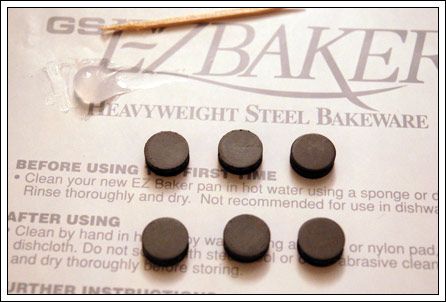 I've stuck my magnets to the cookie sheet, and squeezed out a small blob of glue onto my scrap paper. That blob will do 6 magnets easily.