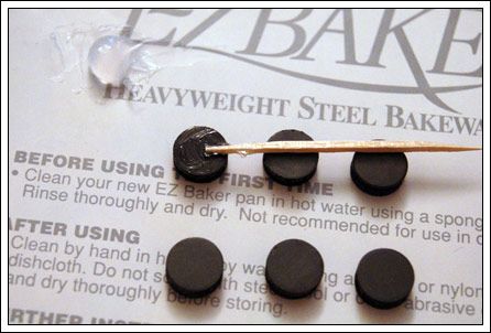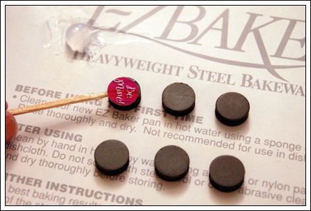 Yay! Lots of tiny little circles. (Or 6, in this case.) I recommend turning them upside down, so it's easier to grab them with your toothpick.