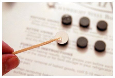 Pick up a tiny bit of glue on your toothpick and smear a thin layer onto the magnet. VERY thin layer.