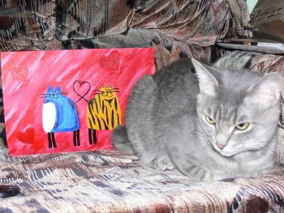 Mar. 12th, 2006 07:55 pmI made this pic for the hubby for V-day, but I'm just getting around to posting it now. I used acrylic paint, and was inspired from a clip art that looked similar I found online. I know its not that great, but I just wanted to make something cute since we both really like cats. :)