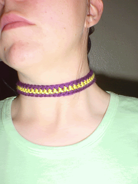 Finally, I made a choker out of my guild's colors. It's a girl's guild in the online game, World of Warcraft.