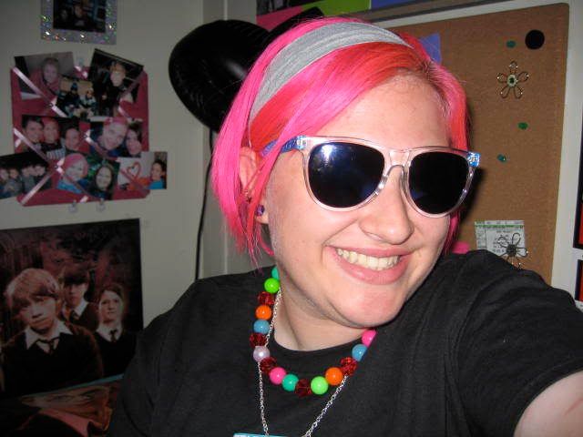 i spray-painted the hubcaps on my car hot pink, because it's such an ugly car otherwise. they match my hair : )