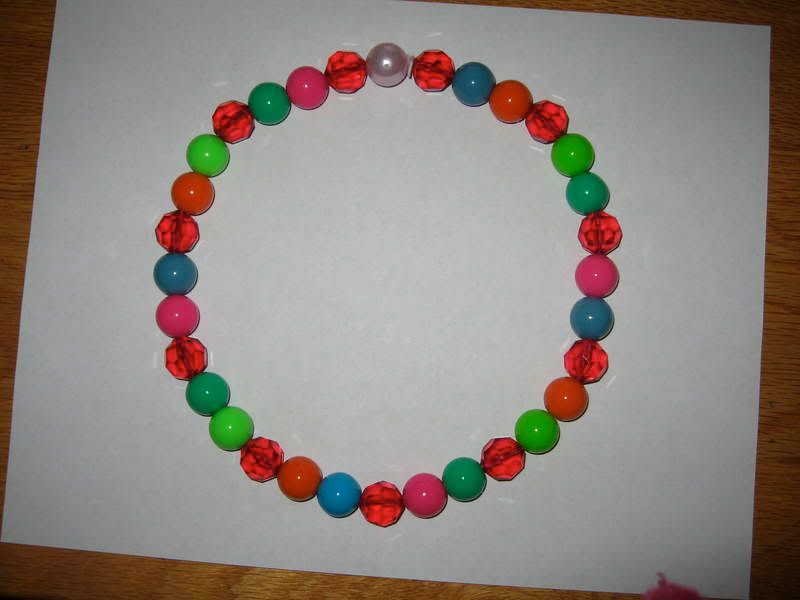 i made this necklace a few weeks ago. i make a LOT of necklaces and spend a good deal of time looking everywhere for large plastic beads. most of the beads in this necklace were bought at claire's in bracelet form, and then cut up. and sorry for the awkward photo, but i wanted to show how big the beads are.