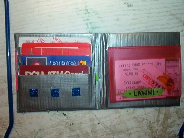 this is my current duct tape wallet. note that this was taken two years ago, and i'm still using it. it's pretty beat up now, but it's still awesome.